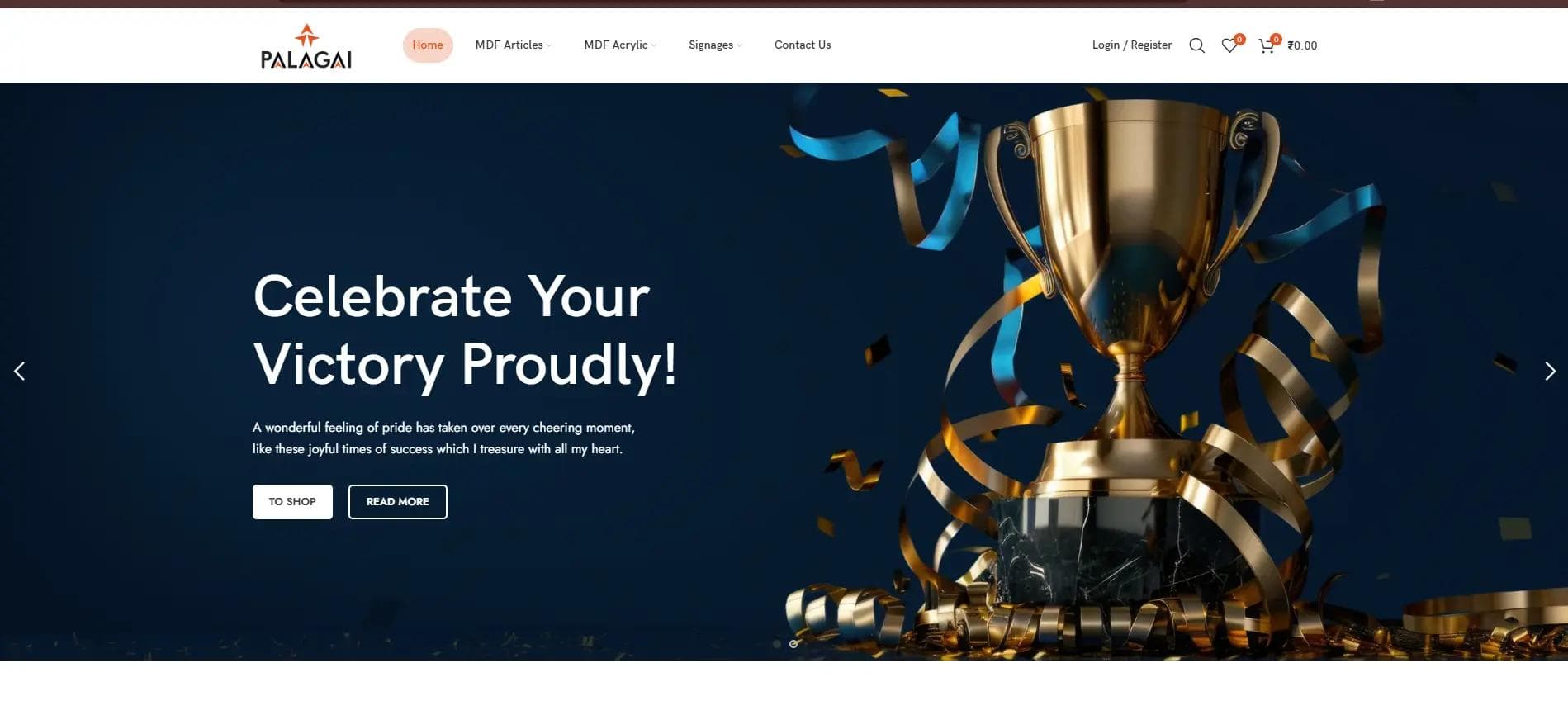 PALAGAI offers premium trophies and awards through a fast and secure WordPress eCommerce platform. With Razorpay integration, coupons, offers, discounts, and size-based variants, customers enjoy a smooth and flexible shopping experience.